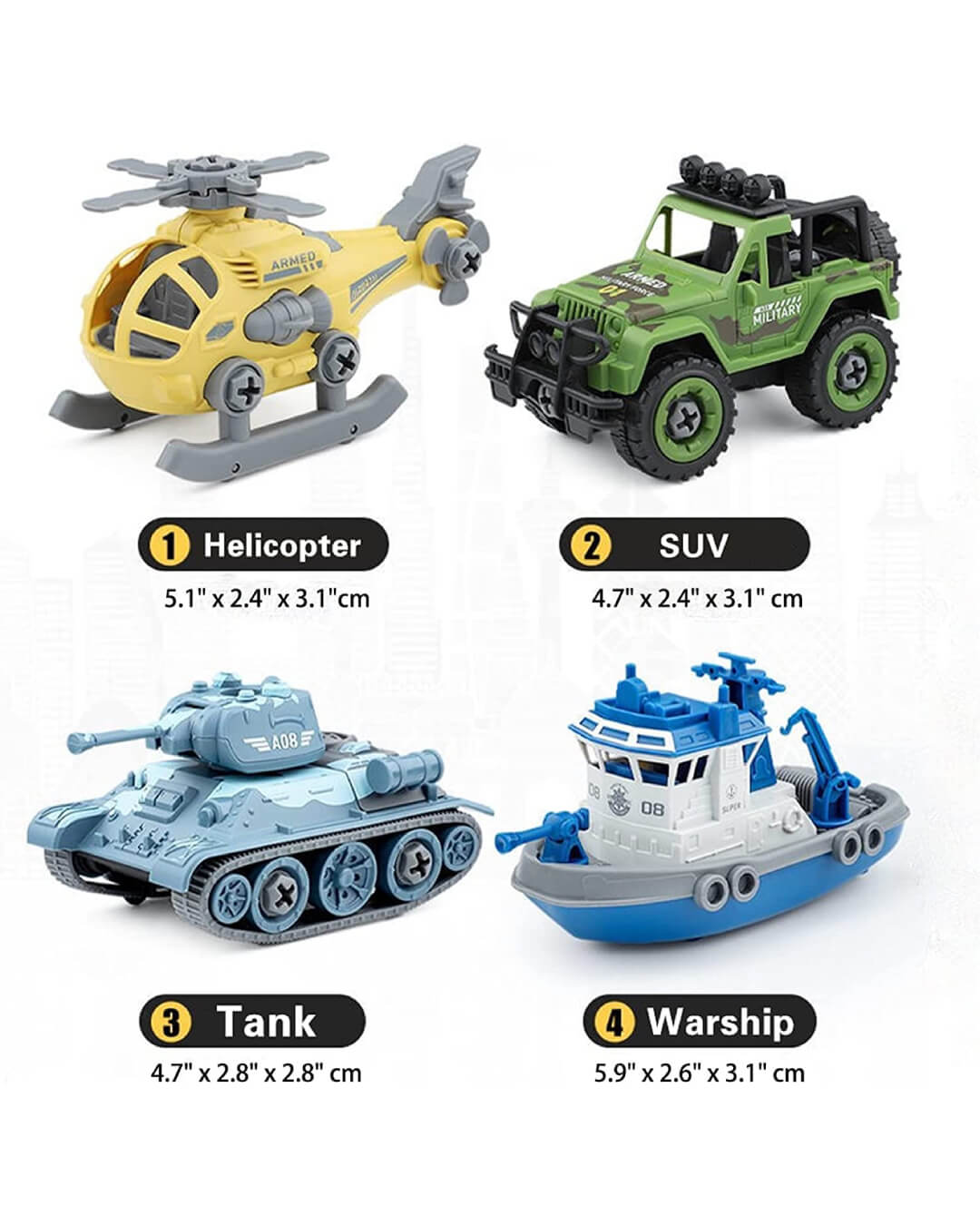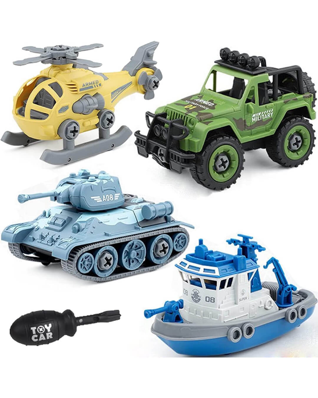 Foldable Vehicles Car Toy 4 Pack with Screwdriver Toy