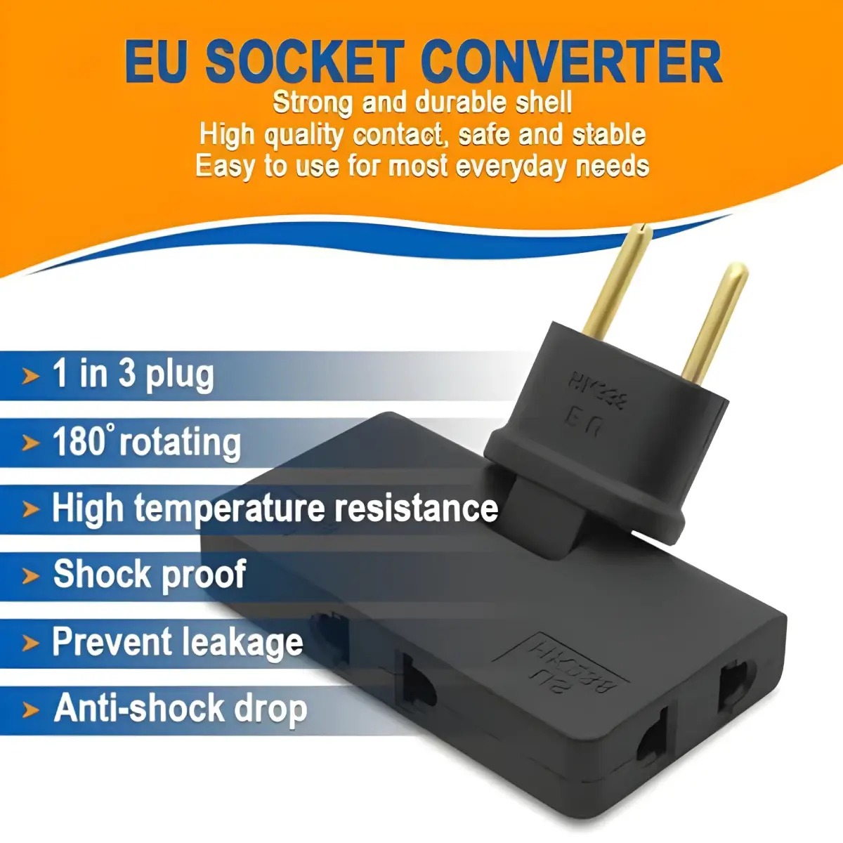 No more dealing with bulky, limited outlet space or multiple adapters. The 3-in-1 Rotatable EU to US Plug Adapter is the all-in-one solution you need for both everyday use and travel. With its compact size, high-power rating, safety features, and flexible design, you can keep all your devices charged no matter where you are. Perfect for tight spots where standard adapters don’t fit, such as behind desks, beds, and kitchen counters. Built with high-quality, flame-retardant materials and equipped with overload protection to ensure safe, reliable operation.